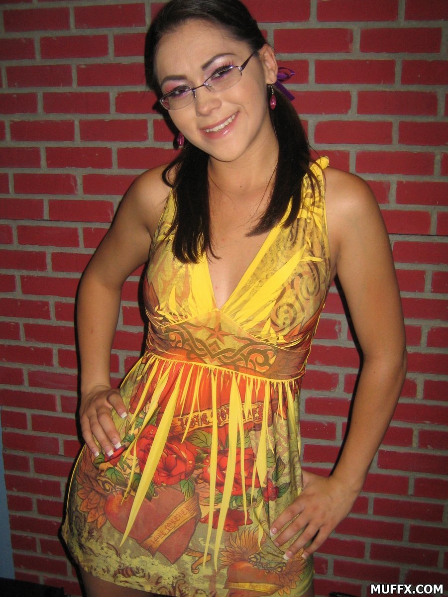 Kandy M is hot teen with glasses as she moves dress to show her small tits